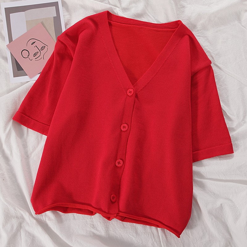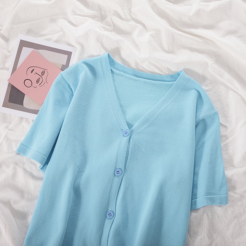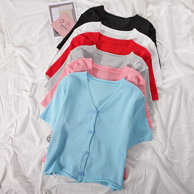 半小時前氣質v領薄款打底針織衫,2020夏季新款女裝短款開衫上衣 - 【買一送三】任選4件,僅需NT$1198